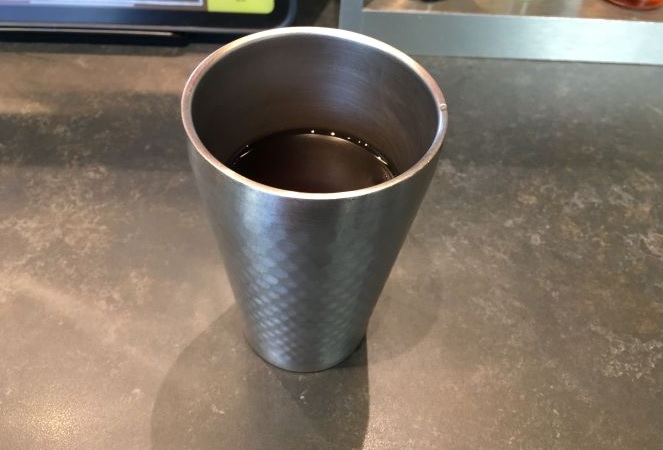 ニンニクと脂がガツンと効いたラーメンを食べている最中、この冷たい黒烏龍茶が口の中をリセットしてくれます。