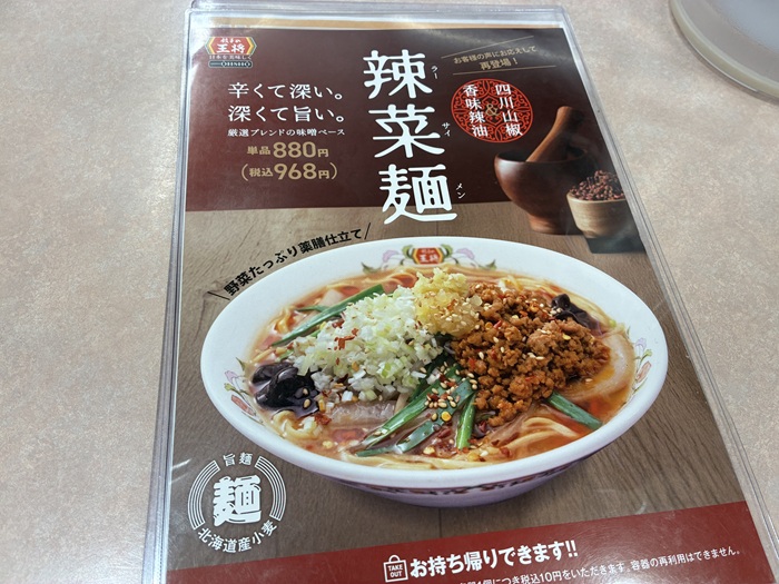 外回り中、餃子の王将の店先で「辣菜麺(らーさいめん)」のメニュー表を前に、あなたは今、そう立ち止まっていませんか?