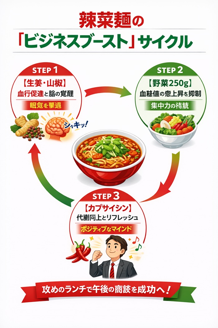 辣菜麺は、むしろ午後のパフォーマンスを劇的に引き上げる「戦略的ランチ」です。
